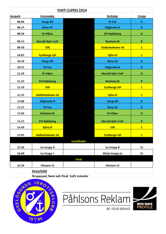 Följande spelare är uttagna till helgens NWP-Cup i anrika Oxelösund: Freddan Sliparn Jonis Kocken Svärdet Larre Persson Pata Rasmus Niemi Davva Matte Palm Första matchen spelas 8.25, samling är 07.30 i Entrén till Ramdalen! SIF FÖRSTÅS KOM MÉ OSS! Väl mött!