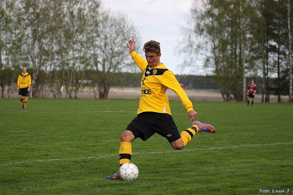 Viktig match på Häradsvallens konstgräs mot TVSK2 som ligger precis under strecket som håller oss kvar i division 6. En vinst skulle dryga ut avståndet och vi hamnar i ett strålande läge för att "hänga kvar". Det märktes att det var ett tag sen vi spelade på (regnblött) konstgräs. Vi tappade bollar, slog enkla passningar alldeles för hårt och att beräkna bollstuds m.m. rätt tog ett tag för krigarna från Stigtomta! TVSK tar tag i taktpinnen direkt med ett rörligt och skickligt passningsspel och vi ser mest ut som "Bambi på hal is" där bollarna studsar/glider ifrån oss och vårt kännetecken denna säsong, passningsspelet verkar vi ha glömt hemma på loftet!! 1-0 kommmer rättvist redan i 10:e min och hemmalaget fortsätter att föra matchen och kan även göra 2-0 efter en knapp halvtimme. Vi flyttar om lite i laget, Jensa går ner på mitten och vi får in lite energi där och han får fart på de övriga spelarna med sitt uppoffrande spel. Kanske inte alltid så vackert men oj så effektivt i sådana här matcher! Efter 25-30 min av första halvlek börjar vi bemästra underlaget och vi tar över matchen med vårat fina passningsspel och vi börjar göra de rätta löpningarna. Tyvärr saknas skärpan i de avgörande lägena så målen får vänta på sig. Vårat vägvinnande spel ger utdelning i minut 38 när Jonas rivs ner i straffområdet och vi tilldöms straff. En straff som Kapten Frick sätter utan problem och vi har reducerat! Vi känner att vi har tagit över matchen och i paus vi lägger upp planen för de sista 45 min. Jonas går ut, Persson in och Palm ut, Oliver in. Vi trummar på och i minut 49 får vi en hörna som Kocken slår till Davva som möter perfekt med foten och det är rättvist kvitterat. Davids första mål i Stigtomtatröjan kunde inte komma lägligare. Vi fortsätter att äga matchen och får tre-fyra frisparkar i bra lägen som en spelsugen och energisk Oliver lägger och de skapar en viss oreda i motståndarnas straffområde utan att ge utdelning. I '75 löper den vindsnabba Niemi till sig ett (halvt) friläge men när han ska skjuta så knuffas han av de två jagande backarna samtidigt som en av dem spelar hem till sin målvakt som tar upp bollen med händerna och vi får frispark till höger i straffområdet... Ett enkelt litet pet till Oliver som smeker upp bollen i bortre krysset och vi har vänt matchen! Återstående tid jagar TVSK ett kvitteringsmål men med lite tur och mycket skicklighet fredar vi vårat mål och kan hålla undan. Segern är vår! Om förra matchens nyckel var tålamod så var denna matchens nyckel kämpatag och lagmoral. Vi visar att vi inte bara kan spela fotboll, vi kan kämpa till oss segrar också. Med ett leende och en härlig känsla åker vi hem med ytterligare tre poäng! Målskyttar: Daniel Frick, David Wisén, Oliver Thomson