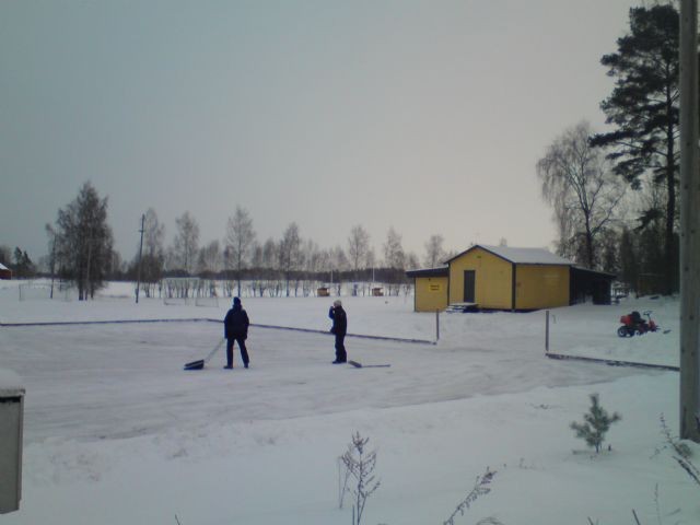 Sargen är på plats och snön är bortskottad. Om kylan håller i sig kan vi ha is till nästa helg. Men för att det ska vara möjligt behöver vi allas hjälp. Har ni en snövagga, trädgårdstraktor eller snöslunga hjälp oss hålla bort all snö från banan. Vill ni även vara med och spola isen ring Fredrik Toftemo 0765-266445 eller Tord Åkerman 073-3903250. Den stora grillen och gallret till eldstaden har tyvärr fått fötter så har ni ett galler att låna ut är det många korvälskare som blir glada. Vi ses på isen i vinter!