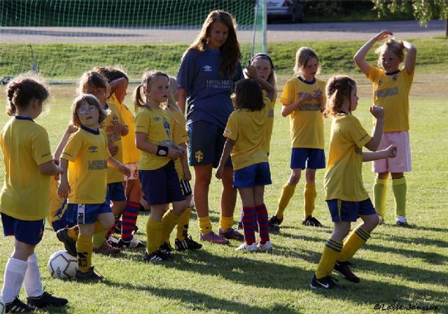 Torsdagen den 1/7 kl 20.40 sattes det punkt för årets Fotbollsskola i Stigtomta IF:s regi. Efter fyra intensiva kvällar, måndag t.o.m. torsdag mellan kl 18.30 och 20.30, hade de 83 anmälda deltagarna lotsats genom delar av fotbollens konster av de 14 ungdomsledarna i 7 olika grupper. Vädret under detta års Fotbollsskola har varit helt fantastiskt. Och Stigtomta IP har besökts inte bara av unga fotbollsspelare utan även av syskon och föräldrar som suttit i gröngräset och njutit av kvällarna. (För ytterligare ökad trivsel ordnade föreningen med enklare fika-försäljning dessa kvällar.) Under onsdagskvällen underhölls alla av en trollkarl som visade upp sina konster för entusiastiska åskådare. Och veckan kröntes med grillkorv och diplom innan alla ledarna avtackades. Stigtomta IF tackar alla som varit inblandade i årets Fotbollsskola! Förhoppningsvis får vi se både deltagare och ledare nästa år på kommande Fotbollsskola! På bilden ser du Ida Lyngen tillsammans med några av tjejerna i "Grupp 1". Du hittar fler foton under menyn "Bilder" där du letar upp mappen "Fotbollsskola 2010". /Lasse J