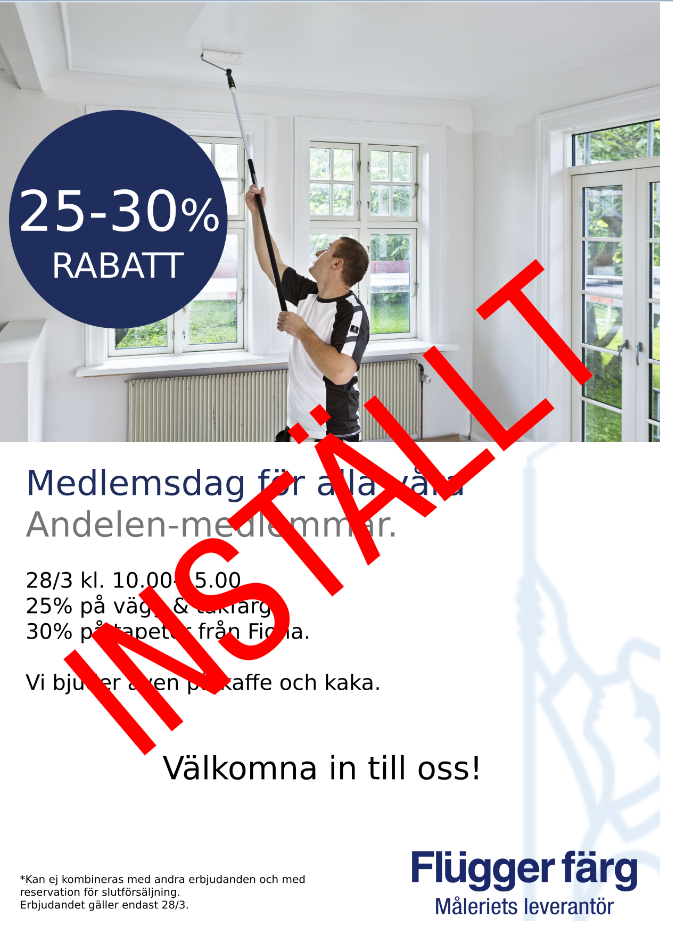 Medlemsdag på Flügger färg 28/3 Inställd pga Covid-19