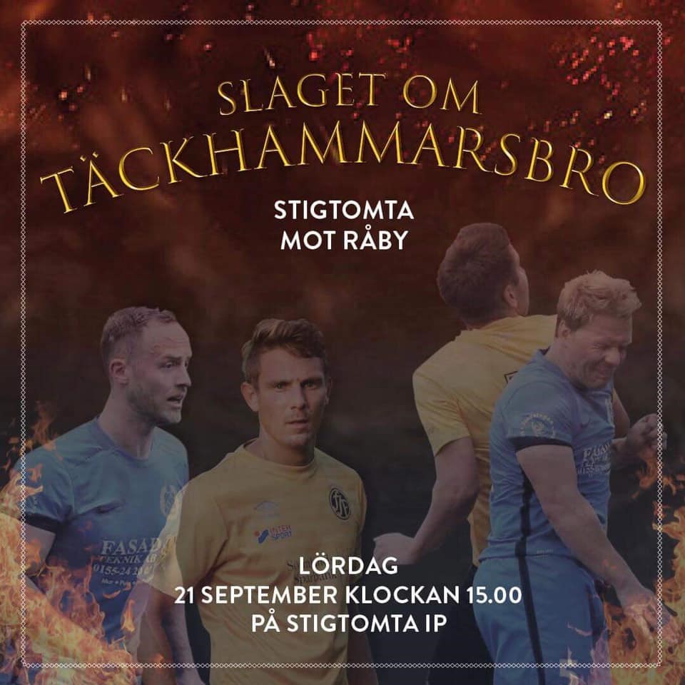 Ett par dagar har gått sedan det där slaget, den där returmatchen om den nu välkända Täckhammarsbron. Inte för att skryta men när jag för många år sedan, på skoj, hittade på att "Slaget om Täckhammarsbro" skulle vara ett perfekt namn för derbyna mot Råby-Rönö IF så fanns ingen tanke på detta genomslag. Slaget om Skavsta-rakan fanns ju redan i och med mötena mot det forna pop-laget IK Tun. Med åren har hypen vuxit, både kring själva matchen och allt runt omkring den, och med många kändisar och gamla vänner i bägge lagen har dessa möten blivit, med tiden, en klassiker. Då IK Tun inte längre existerar i samma utsträckning har det istället blivit vi i Stigtomta IF och dem i Råby som fått stå för den där alldeles extra derbykänslan här nere i gärdsgårdsserierna. En av anledningarna till att detta har blivit en folkfest numer beror, som jag ovan nämnde, att vi i de olika klubbarna känner till varandra. Jag tycker det är förbaskat kul att få möta mina gamla lagkamrater från HBK/SIF-tiden i Axbom, Fahlen, TK och sen min gamle kompanjon i Eric Stenius förstås. Att det finns några välkända ansikten i den blåa tröjan gör förstås att man vill vinna matchen extra mycket, så att man efteråt kan slänga en syrlig kommentar med glimten i ögat. Precis en sådan fick jag ta emot sekunder efter matchen av Henke Svehn, surt men ändå charmigt och inga hard feelings. En annan stor anledning till att dessa matcher gått och dragit mer publik än Nyköpings BIS är förstås - publiken och intresset kring matcherna. Råby-Rönö IF är överlägsna i publikligan och där är det bara att lyfta på hatten. Men är det bara kvantiteten som är viktig? Jag tror nämligen att kvalitén också spelar stor roll hos publiken. Att vi på varje match, såväl hemma som borta, vardag eller helg, med eller utan Mikael Hjelm har hans föräldrar på samtliga matcher är en ynnest. Att vi sedan alltid får positiva hejarop på våra sociala medier av Eva Frick och Kerstin Törnblad är inget annat än en fantastisk lyx i stöttning. Dessa guldklimpar tillsammans med alla andra "Siffare", Råbyiter och andra som kommer för att se detta "slag" är kvittot på att Stigtomta IF och Råby-Rönö IF har lyckats med att bygga upp något stort kring det som förr bara vara en match i mängden. Hur lyckades vi då med det? Svaret är nog enkelt i form av eget intresse och ett stort engagemang hos en eller flera personer i vardera förening. Jag har tillsammans med Marcus Carlsson och Fredrik Larsson planerat, involverat och funderat länge och väl för att lördagens arrangemang skulle bli lyckat. Av allt att döma lyckades vi med ett fullt godkänt i betyg. Detta hade förstås inte gått om inte våra respektive blev involverade och bidrog med ett minst lika stort engagemang, så tack till Maria, Rebecka och Hanna. Ett stort tack även till Anki, Viktoria, Tommy, Eva och Regina och ni andra som såg till att sköta allt när vi andra var ute och slogs i slaget. Att sedan den lokala tidningen i Södermanlands Nyheter fortfarande inte kan vara på plats eller göra ett försök till ansträningning till dessa matcher är däremot pinsamt. Närmre 300 personer såg första mötet på Råbyborgen och i lördags var det strax över 200 personer som tröck ihop sig på IP. De bevittnade en folkfest med glada miner, ansiktsmålning, hamburgare till försäljning, mitt i prick-tävling och så då det där slaget ute på fotbollsplan. Sedan var det där med entrépengen... Råby må vara storebror när det kommer till Slaget om Täckhammarsbro men när det kommer till storleken på förening, ungdomslag och medlemmar så är ändå Stigtomta IF ett par pinnhål högre upp och jag kan tycka att 30 kronor är det värt för att ta del av en folkfest som nu kanske dröjer en eller par säsonger till innan vi återigen får ta del av. Fridens liljor, JW