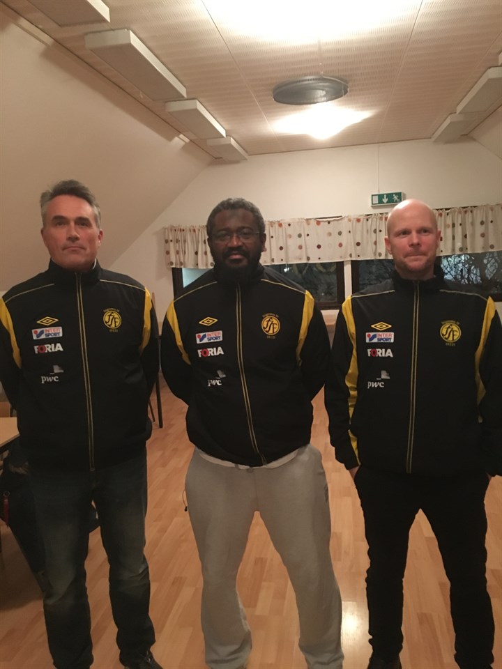 Vi lämnade snön och kylan för värmen inne i Loftets lokaler. Klubbstugans kaffe hade ”Noppe” förberett tillsammans med fikabröd. En hel del nya ansikten, gamla och nygamla ansikten syntes till. Alla nyfikna på vad som skulle sägas denna decemberkväll. Ledarstaben 2018: Pa Musa Fofana, huvudtränare. Konny Ericsson (saknas på bilden), assisterande tränare. Fredrik Pettersson (fd. Huvudtränare), lagledare. Nicklas Andersson, materialare. Pa har ordet: Pa med landslagsmeriter från Gambia inledde mötet med att prata om sin fotbollskarriär, som tog honom till Sverige och bland annat Hammarby IF och Nyköpings BIS. När skador satte stopp för fortsatt spel blev Pa övertalad av Caj Hjelm att fundera på tränarrollen. Efter uppdrag på ungdomsnivå i bland annat Nyköpings BIS och Hargs BK, blev det sedan A-laget i Råby-Rönö IF. Efter ett uppehåll på 4 år som fyllts med flertalet tränarutbildningar är han nu klar som Stigtomta IFs huvudtränare. Kontraktet är skrivet på 10 månader, det vill säga säsongen ut. Pa Musa Fofana talade vidare om ambition, uppbyggnadsfasen inför säsongen och att han såg fram emot årets säsong med spelare och ledare. Säsongen 2018: Det blir inget inomhusspel för Stigtomta IF i någon form. Ett beslut som tagits mellan spelare och ledare gemensamt. Första träningen blir istället 8/1, 19.30, på Rosvallas A-plan. En kickoff är inbokad i mitten av januari och redan nu planeras ett träningsläger. Ett träningsläger som kommer ligga helgen innan seriepremiären i april (13-15/4). Försäsongen kommer även fyllas av DM-matcher och träningsmatcher. Träningstiderna kommer variera, men dagarna kommer vara måndagar och onsdagar initialt. JW